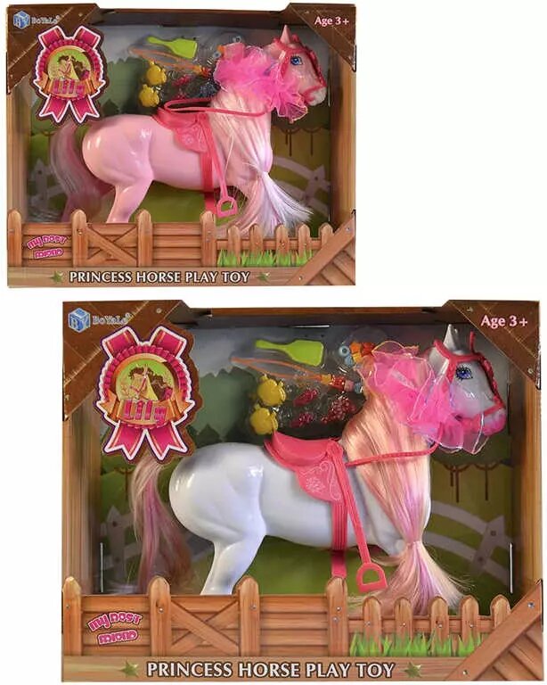Koník plastový osedlaný 24cm set s doplňky pro princeznu 2 barvy