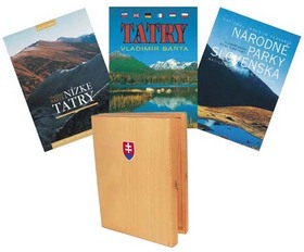Set kníh: Nízke Tatry, Tatry, Národné parky Slovenska. Reprezentačná drevená kazeta s farebným štátnym znakom, farba buk. przeczytaj całość