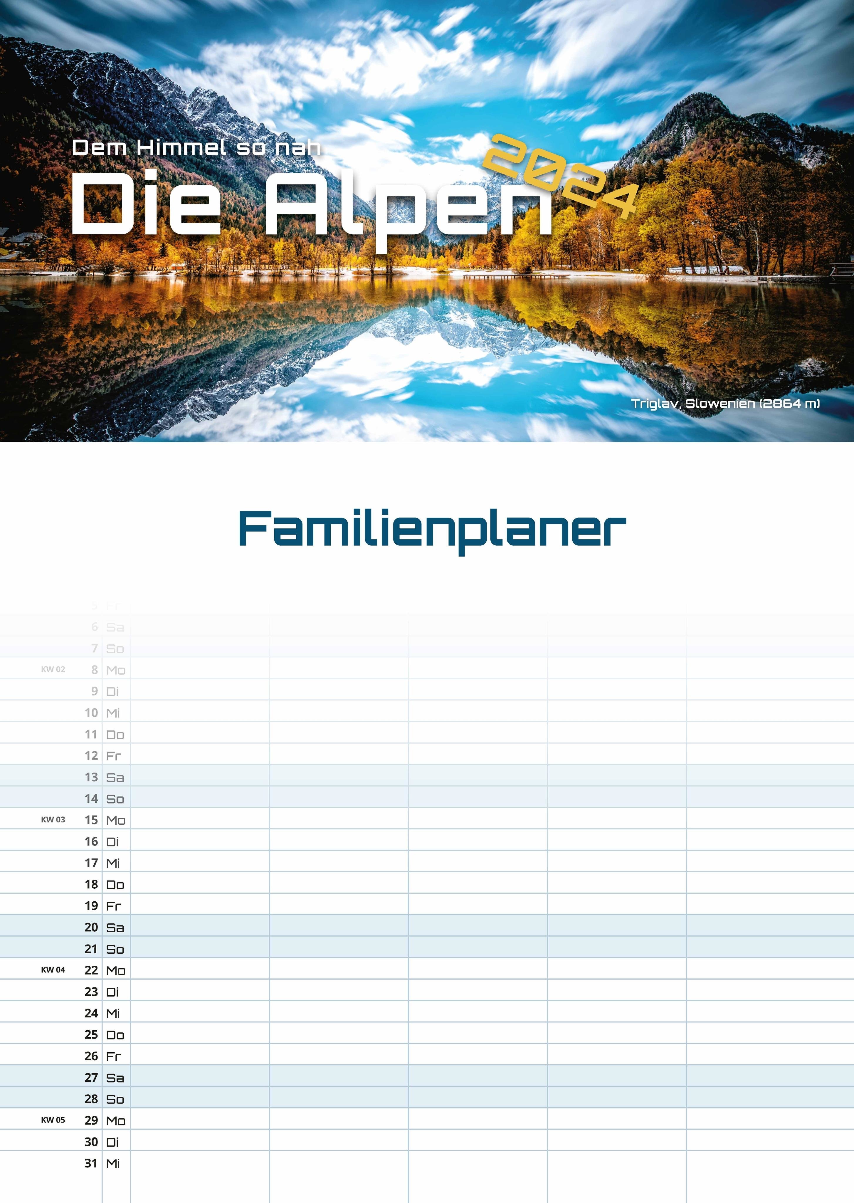 Die Alpen - dem Himmel so nah - 2024 - Kalender DIN A3 (Familien-/Terminplaner) (niemiecki)