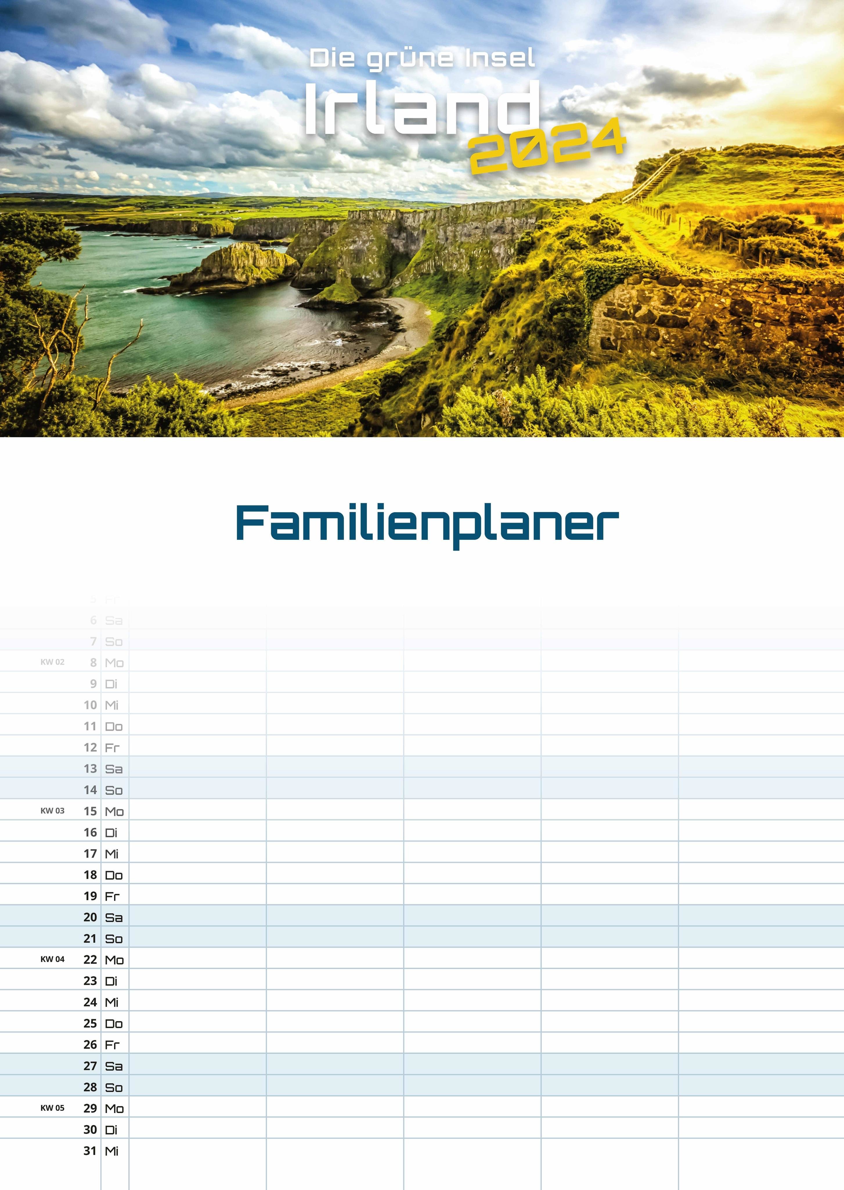 Irland - Die grüne Insel - 2024 - Kalender DIN A3 (Familien-/Terminplaner) (niemiecki)