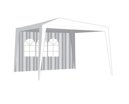 Boki namiotu z oknem - biało-zielone paski. Materiał - rozmiar: PE 100G, 2,95 x 1,9 m. Boki nadają się do pawilonów imprezowych (namiotów) 3 x 3 m. przeczytaj całość