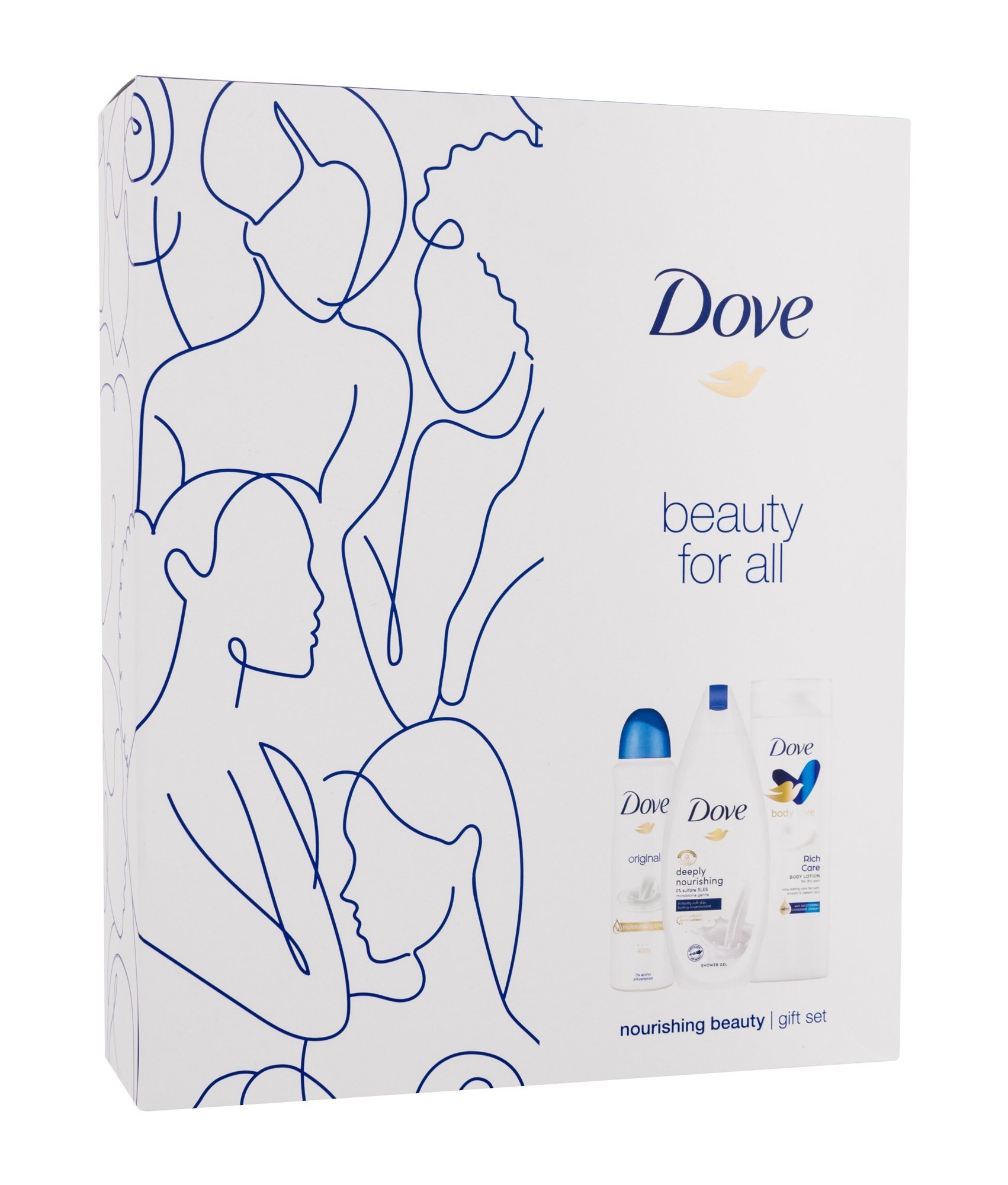 Dove Nourishing Beauty sprchový gel Deeply Nourishing 250 ml + tělové mléko Rich Care 250 ml + antiperspirant Original 150 ml