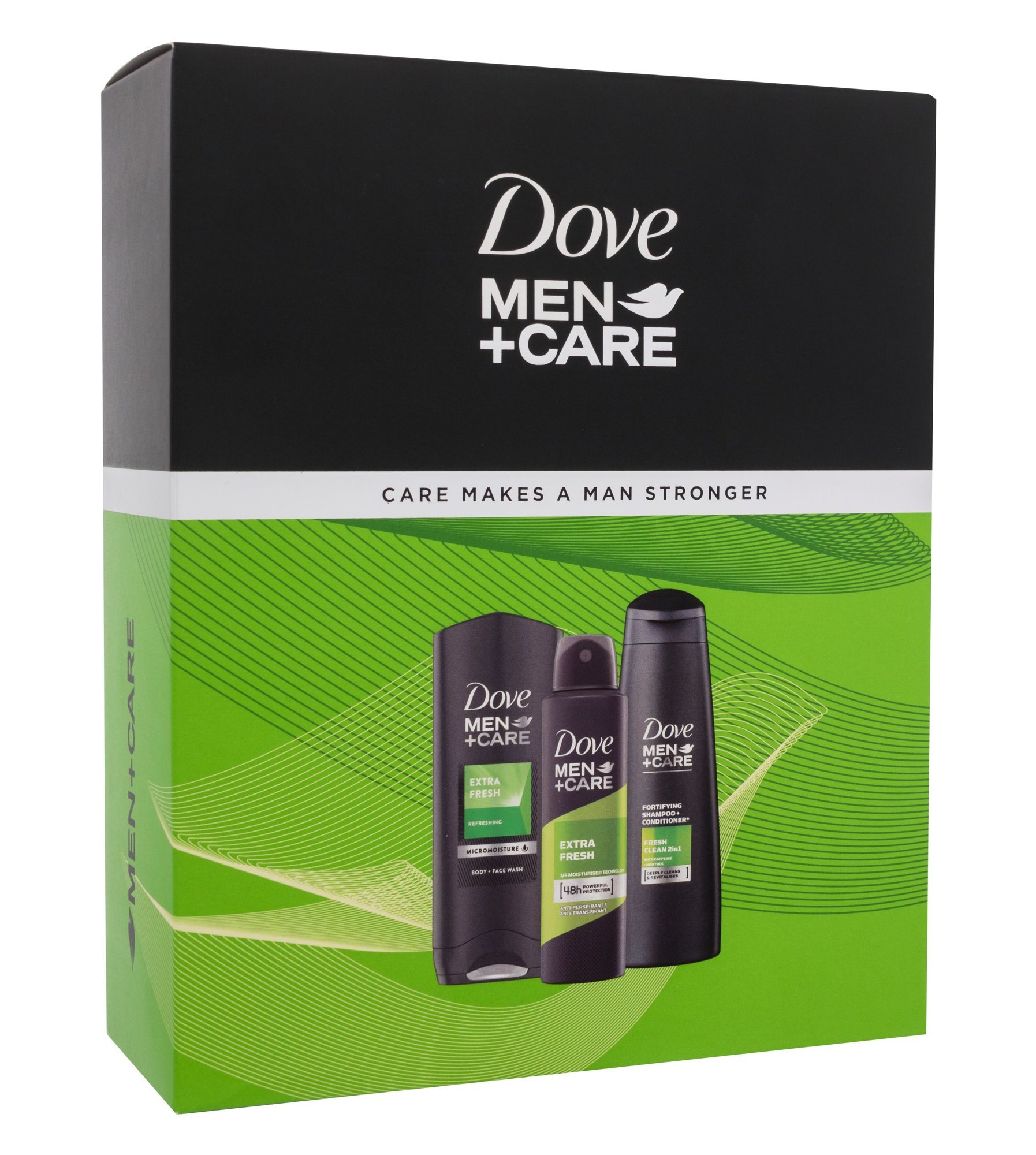 Darujte extra svěžest s dárkovým setem Dove Men + Care Extra Fresh Care Makes A Man Stronger!Sprchový gel Men + Care Extra Fresh 250 mlSprchový gel Dove Men + Care Extra Fresh vás osvěží a dodá vaší pokožce potřebnou hydrataci.Jaké jsou klíčové vlastnosti sprchového gelu Extra Fresh?zabraňuje...