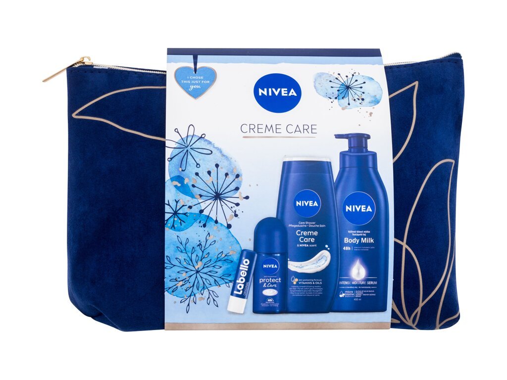 Nivea Creme Care tělové mléko Body Milk 400 ml + sprchový gel Creme Care 250 ml + antiperspirant Protect & Care 50 ml + balzám na rty Labello Original 4,8 g + kosmetická taštička