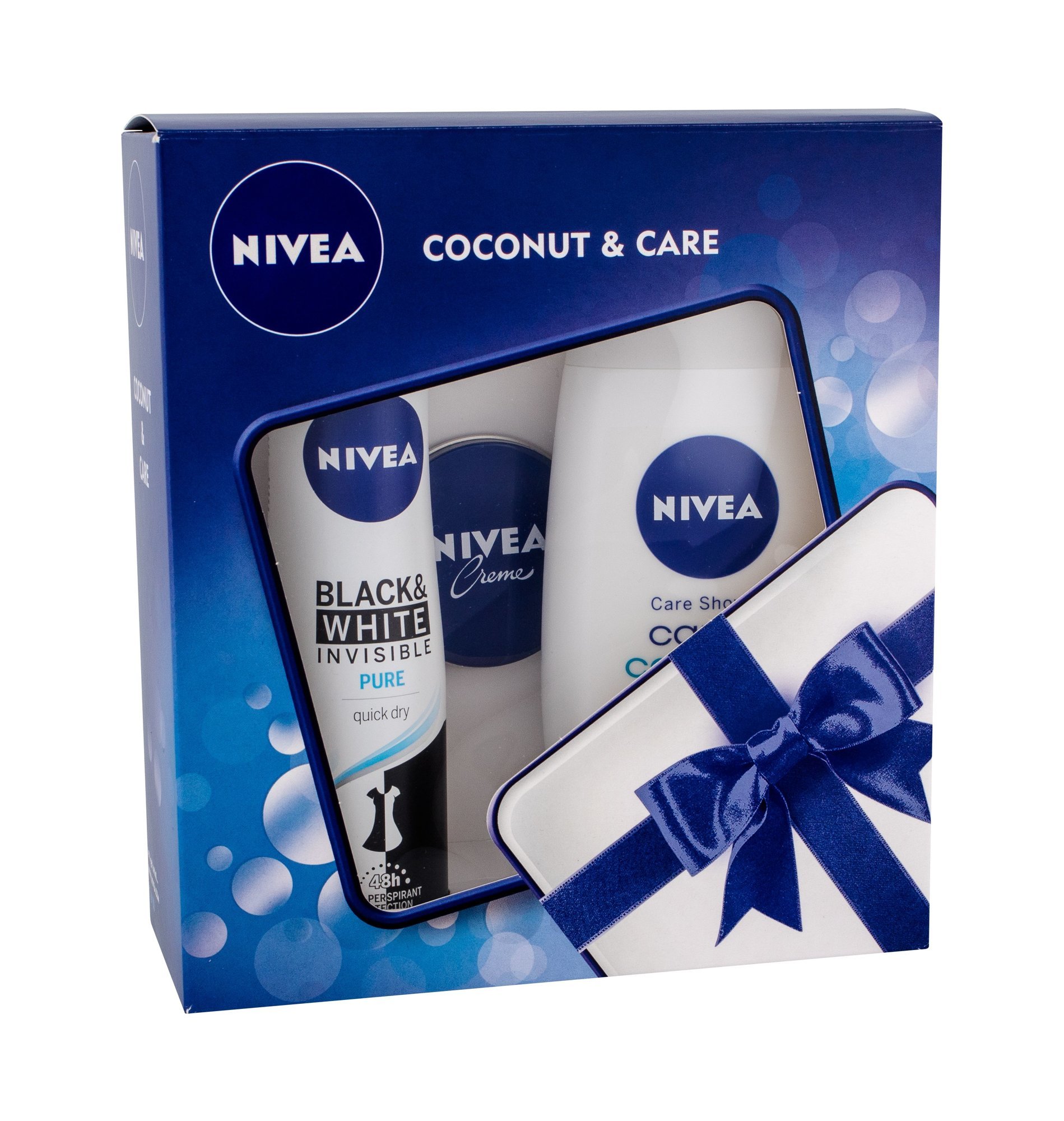 Nivea Care & Coconut sprchový krém 250 ml + antiperspirant For Black & White Pure 150 ml + pleťový krém 30 ml