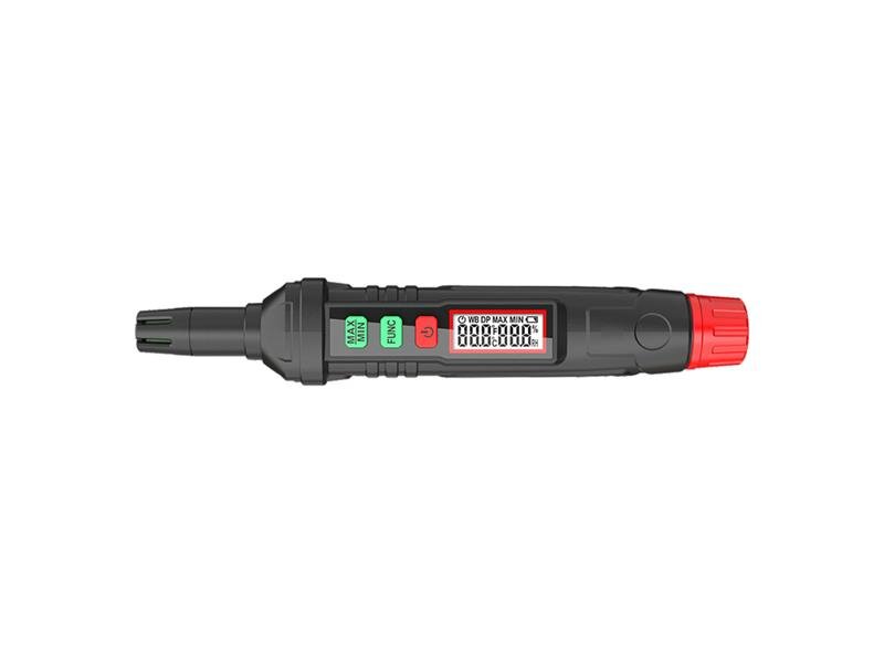 Termohygrometr měří teplotu v rozsahu od –20 do +60 °C a vlhkost v rozsahu od 0 do 100 %. Údaje se zobrazují na černobílém displeji. K dispozici je funkce pro ukládání mezních hodnot (minimálních a maximálních).