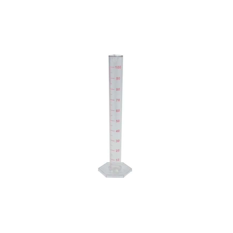 Wykonany z wysokiej jakości plastiku, oferuje niezawodność i długą żywotność. Jego całkowita wysokość wynosi 26,5 cm, a średnica podstawy 8 cm, co zapewnia stabilność i wygodne trzymanie. Pojemność 100 ml jest idealna do codziennych zastosowań laboratoryjnych i kuchennych. Dzięki przezroczystemu materiałowi łatwo zobaczysz poziom cieczy dokładnie na żądanej miarze.