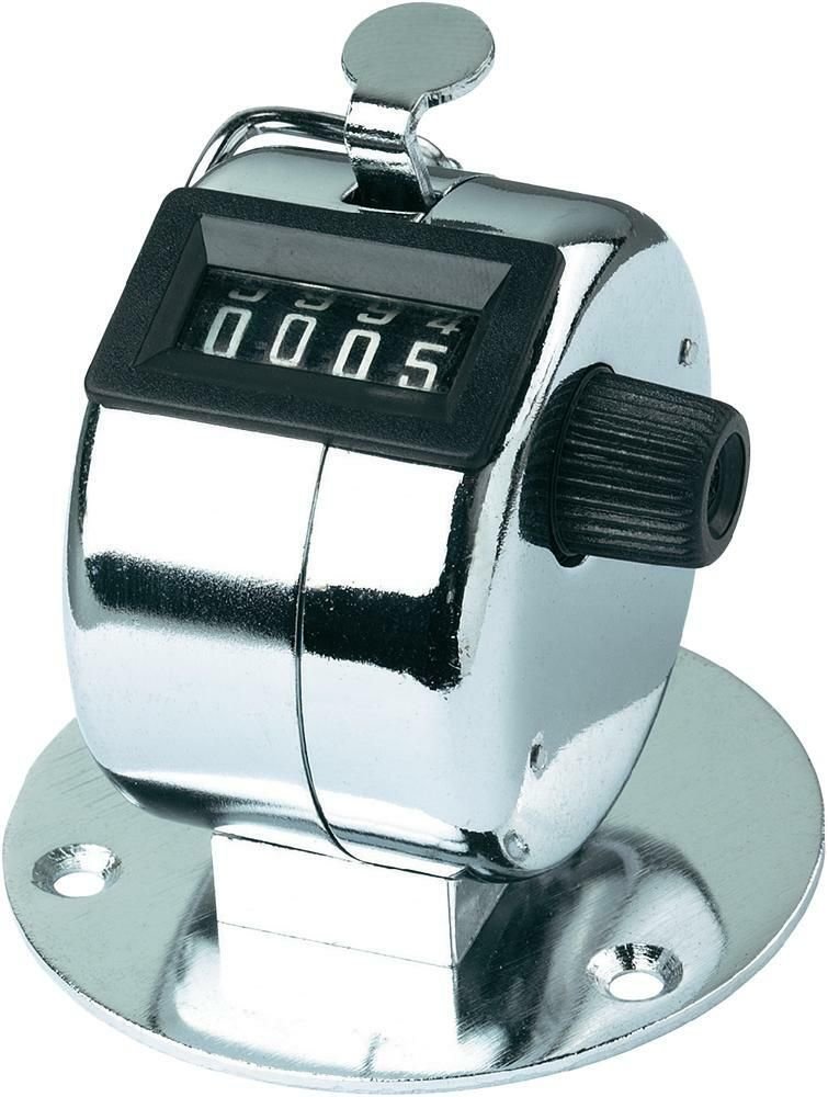Za pomocą tego urządzenia można precyzyjnie rejestrować wszystkie operacje liczenia, takie jak zapisy przebiegu ruchu, liczenie sztuk towaru itp. Poręczna chromowana metalowa obudowa. Z odkręcaną płytką montażową (Ø 53 mm) do montażu na stole.