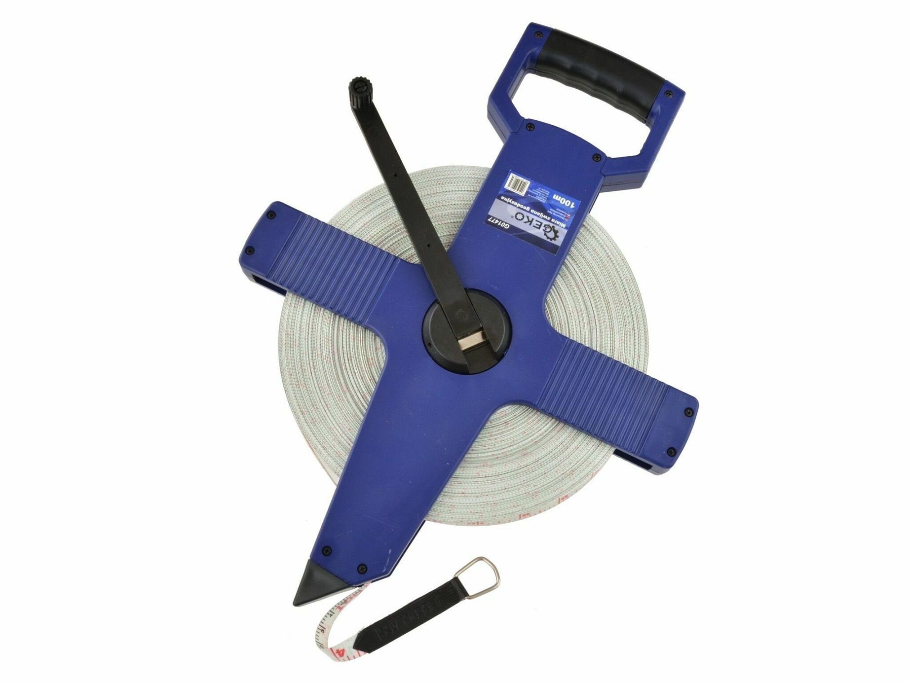 Pásmo měřící na geodezii, 100m, š. pásma 13mm, GEKOMěřící měřicí páska 100 m určená pro měření velkých vzdáleností v otevřených a uzavřených prostorech. Páska je vyrobena ze skelných vláken (skelná vlákna), vyznačující se vysokou pevností a odolností proti oděru a vyblednutí.Dolní část krytu...