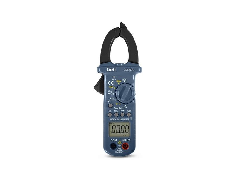 Klešťový digitální multimetr GETI GM200C je ideální přístroj pro měření stejnosměrného i střídavého napětí, střídavého proudu, odporu, kapacity a řadou dalších užitečných funkcí. Přístroj je také vybaven přehledným a podsvíceným displejem, který zajišťuje dokonalé čtení naměřených hodnot.
