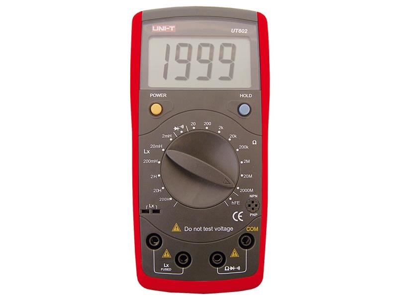Multimetr UNI-T UT602 (RL) Spolehlivý RL-metr UT 602 s vynikajícím poměrem cena/výkonSPECIFIKACE:Odpor: 20 Ohm / 200 Ohm / 2 kOhm / 20 kOhm / 200 kOhm / 2 MOhm / 20 MOhm / 2000 MOhm- přesnost: +/- (0.8%+1)Indukce: 2mH / 20mH / 200mH / 2H / 20H / 200H- přesnost: +/-...