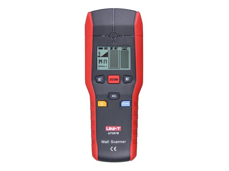 Detektor UNI-T UT387B je kvalitní přístroj s dobrým poměrem cena/výkon, který najde uplatnění na každé stavbě a při rekonstrukci. Slouží zejména pro detekci dřevěných trámů, kovových profilů a vodovodních trubek a elektrických vodičů s el. střídavým napětím ve zděných stěnách, stropech a podlahách, k usnadnění montážních prací. Přístroj obsahuje grafický displej LCD, který umožňuje zobrazení mnoha stavů a režimů práce a také bzučák a červenou a zelenou LED diodou. Různé režimy automatické uživatelské kalibrace. Možnost zvolení tichého režimu. Velmi užitečná pomůcka pro řemeslníky, zedníky a podlaháře.