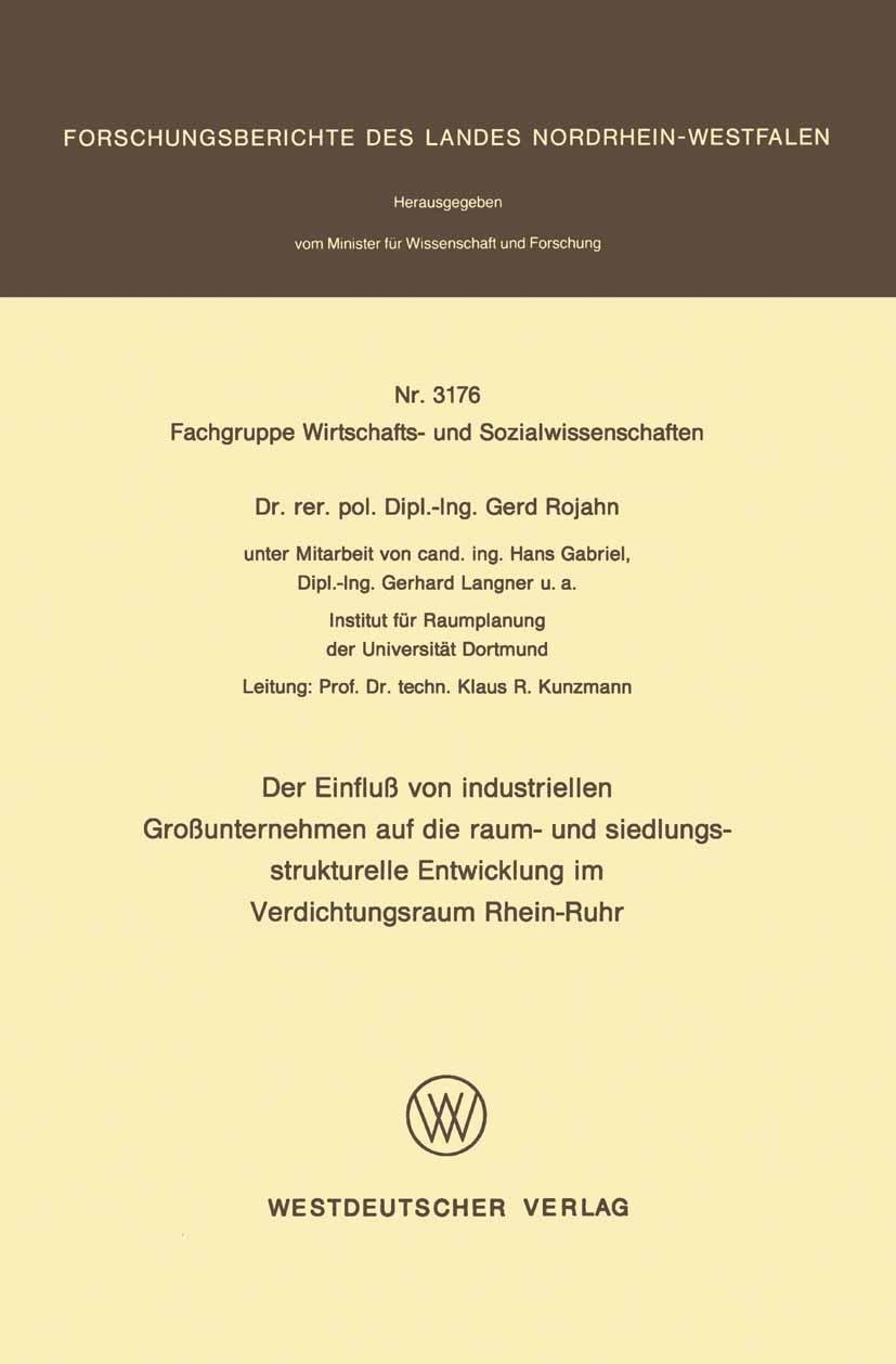 Der Einfluß von industriellen Großunternehmen auf die raum- und siedlungsstrukturelle Entwicklung im Verdichtungsraum Rhein-Ruhr (niemiecki)