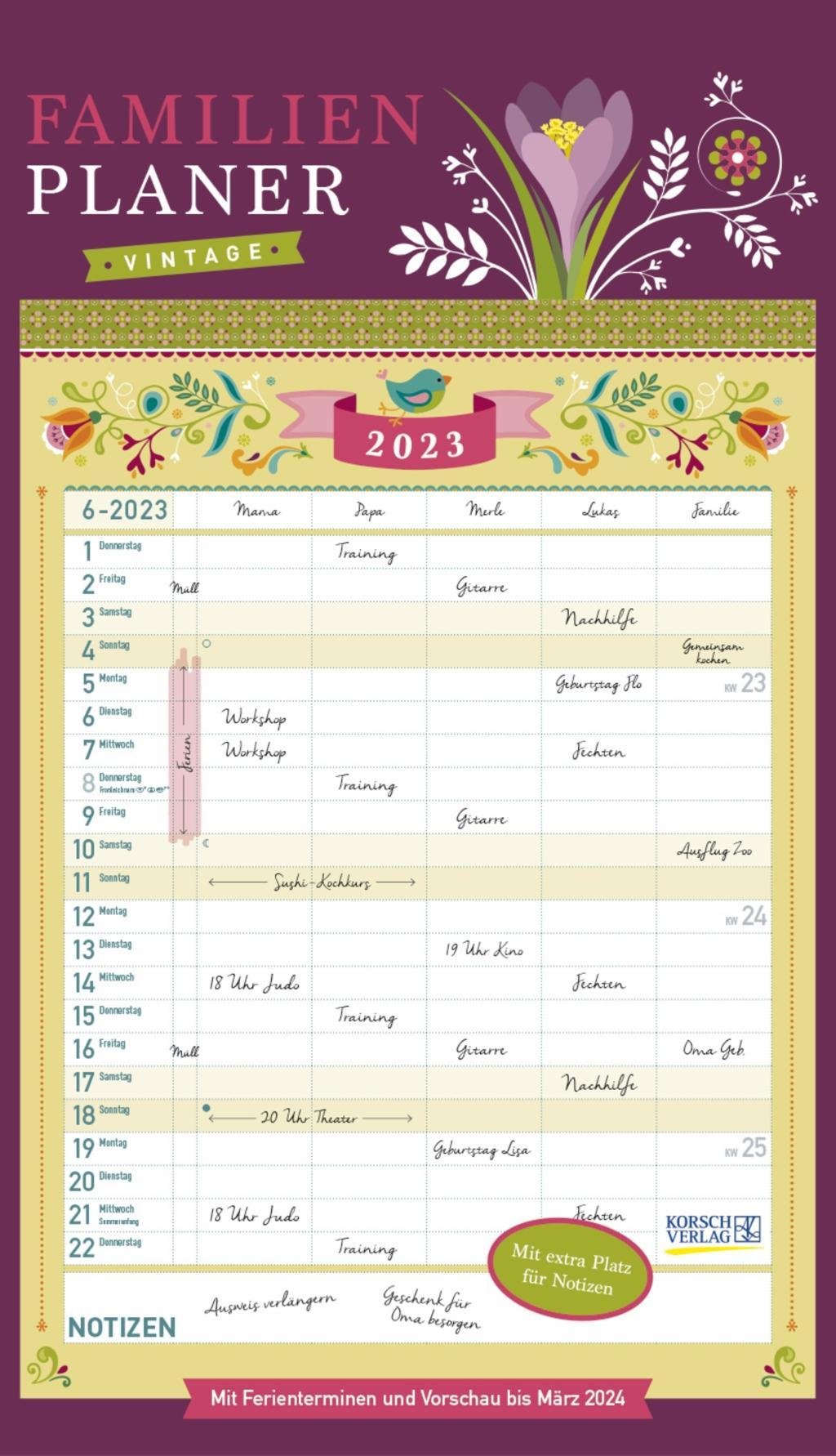 Familienplaner Vintage 2023 (niemiecki)