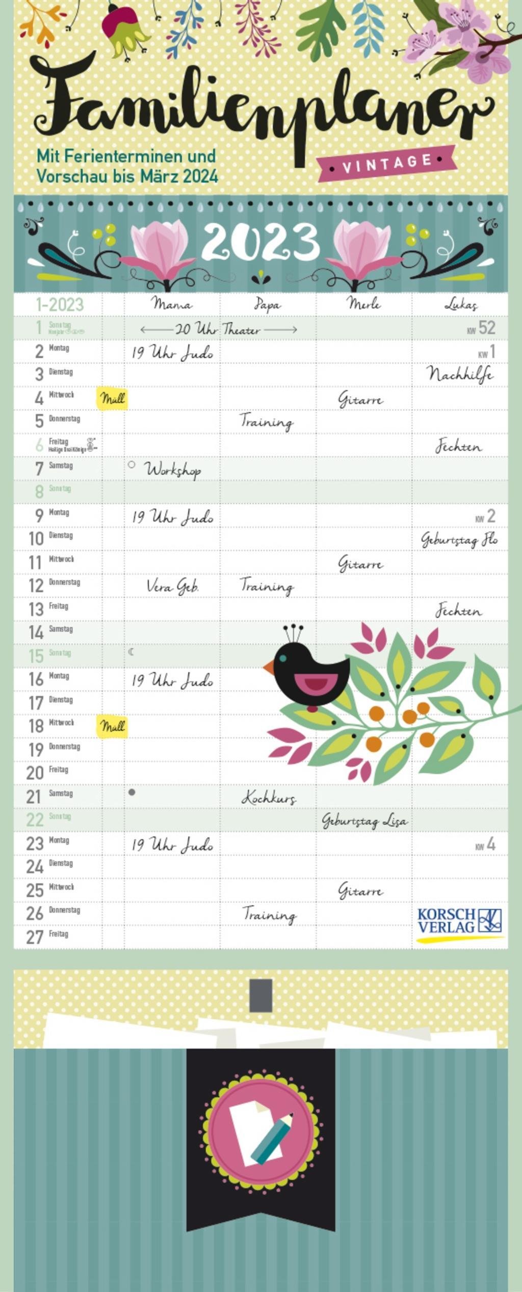 Familienplaner Vintage Zetteltasche 2023 (niemiecki)
