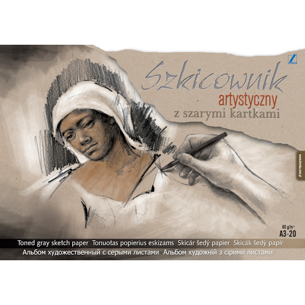 Szkicownik artystyczny A3 20k. 80g/m2 z szarymi kartkami, Kreska