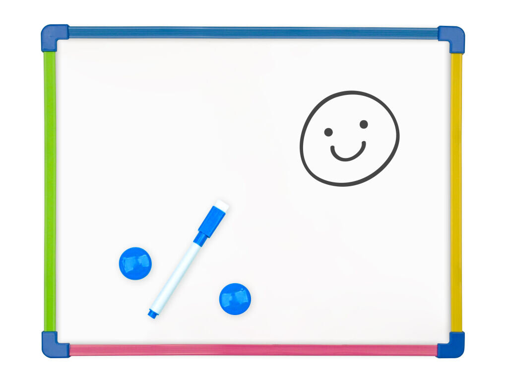 Magnetyczna tablica w plastikowej ramie z pisakiem i 2 jednokolorowymi magnesami. przeczytaj całość