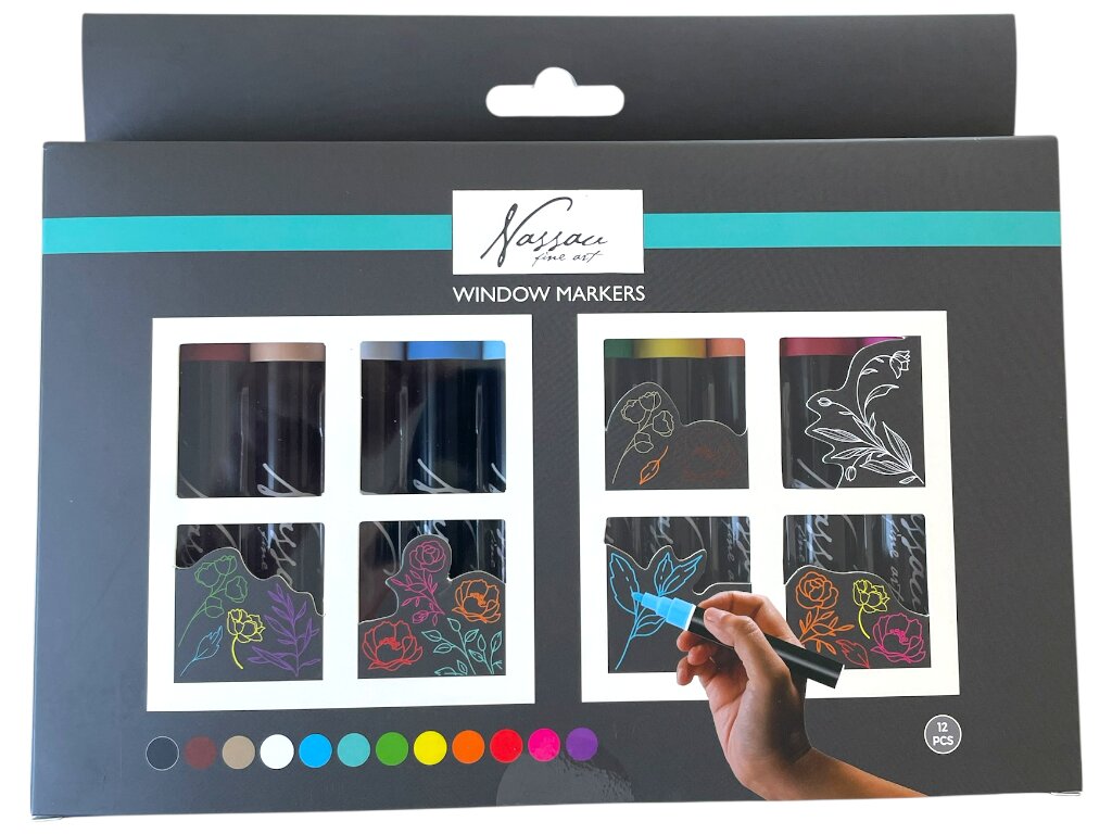 Objevte univerzální křídové fixy na okna Nassau Fine Art – sada 12 barev (bílá, hnědá, béžová, tyrkysová, oranžová, růžová, fialová, černá, modrá, zelená, žlutá, červená) pro děti i dospělé. Díky oboustrannému hrotu (kulatý a zkosený, 3–5 mm) můžete jednoduše tvořit tenké i silné linky podle...