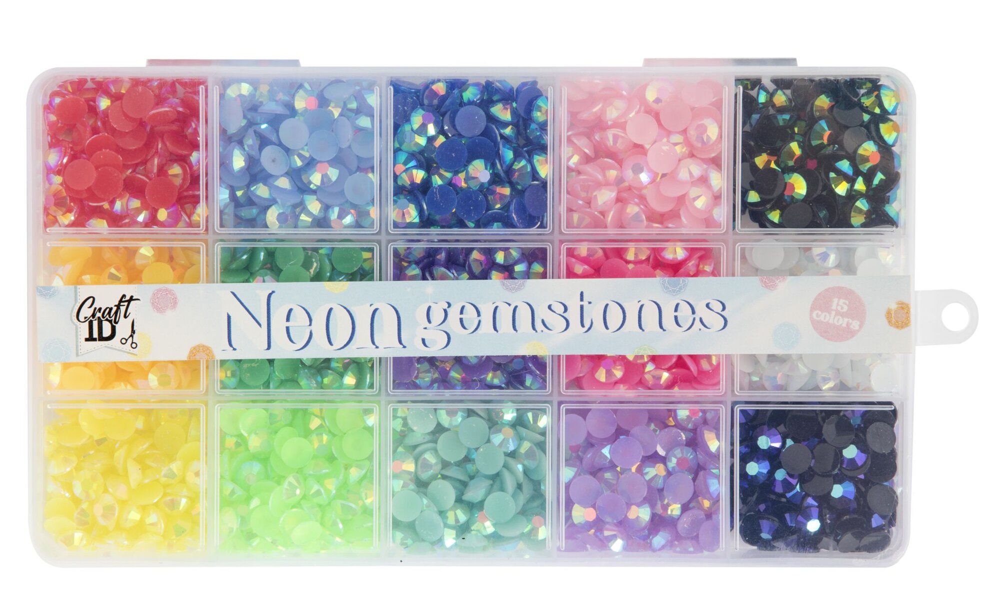 Neonové drahokamy, 15 barev, průměr 0,5 cm