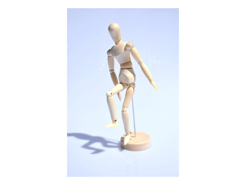 Drewniany manekin z 14 ruchomymi stawami stoi na solidnej drewnianej podstawce i umożliwia łatwe ustawienie różnych pozycji, które wiernie odwzorowują ludzkie ruchy - czy to chodzenie, bieganie, czy pozdrowienie. Dzięki swojej elastyczności jest idealny zarówno dla artystów chcących doskonalić rysunek postaci, jak i dla każdego, kto doceni oryginalną dekorację do domu lub biura. Ten manekin to również świetne narzędzie do zrozumienia funkcjonowania ludzkich stawów i ruchów.