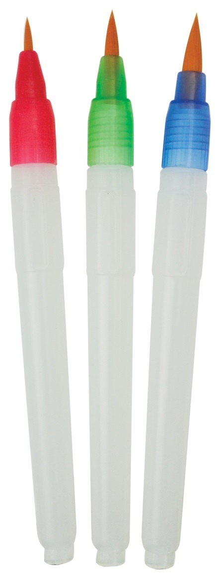 - Zestaw zawiera 3 pędzle z napełnialnym pojemnikiem na wodę.