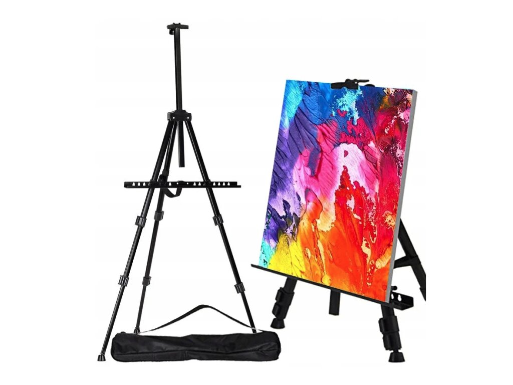 Regulowana sztaluga malarska z aluminiową konstrukcją.