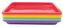 Opakowanie zawiera 12 sztuk kolorowych plastikowych tac/podstaw o wymiarach 28 x 22 x 3 cm - 2 fioletowe, 2 pomarańczowe, 2 zielone, 2 żółte, 2 niebieskie, 2 czerwone.