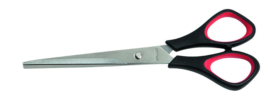 Nůžky s nožnicemi z nerezové oceli - s pogumovaným symetrickým úchopem. Upozornění: "Není vhodné pro děti do 3 let. Funkční ostré hrany. Nebezpečí poranění." przeczytaj całość