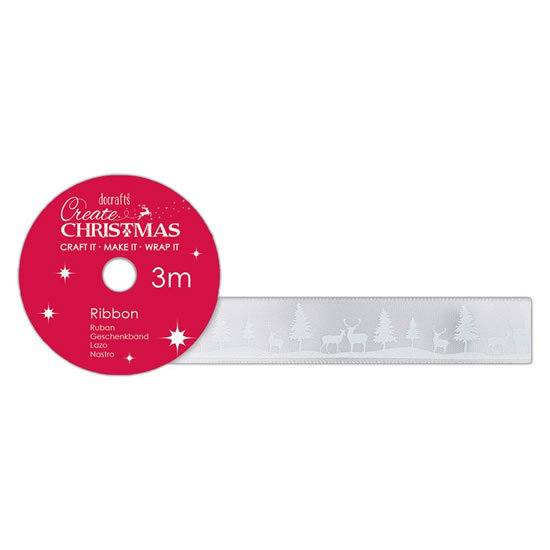 DOCRAFTS saténová stříbrná stuha - zimní krajina 1,5 cm x 3 m
