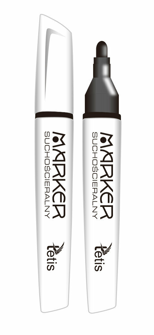 Suchościeralny, czarny marker od firmy TETIS. Jest szybkoschnący i łatwy do starcia z większości powierzchni. Tusz jest nietoksyczny, wykonany na bazie alkoholu. Dzięki trójkątnemu, ergonomicznemu wyprofilowaniu dobrze trzyma się go w dłoni, co zapewnia komfort pisania. Pisak posiada...