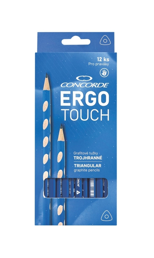 Grafitové tužky CONCORDE ErgoTouch,HB,pro praváky, trojh., modrá, 12ks