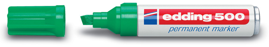 Permanentní popisovač Edding 500 se seříznutým hrotem obsahuje inkoust se slabým zápachem. Znovu naplnitelný. Zkosený hrot, šíře stopy: 2-7 mm.