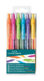 Zestaw 6 kolorowych żelowych długopisów. SZYBKO SCHNĄCY. Wyraźna, nasycona linia 0,7 mm. Mechanizm przyciskowy, gumowy uchwyt. Jednorazowy wkład. Dostarczane w twardym plastikowym etui. przeczytaj całość