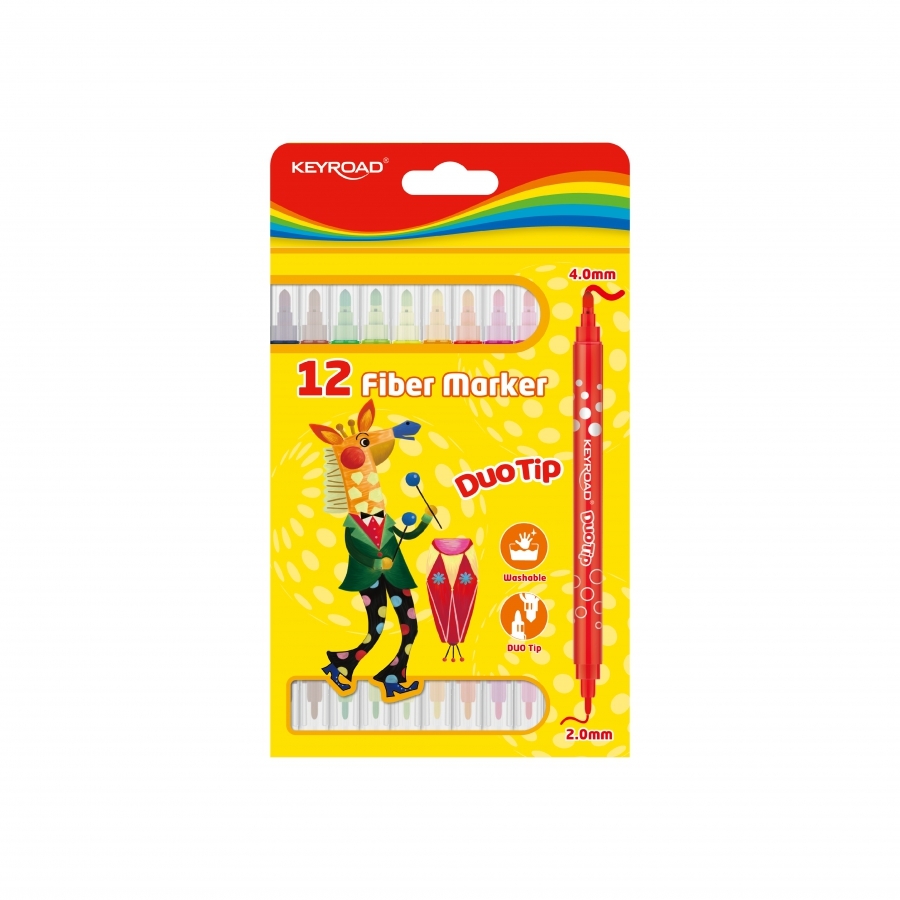 Sada vypratelných popisovačů v zářivých barvách. Hroty jsou na jedné straně popisovače slabé a na druhé silné, celkem 12 barev. Ventilační uzávěr pro bezpečnější použití. Tělo s bílým potiskem. Hroty 2 a 4mm. przeczytaj całość