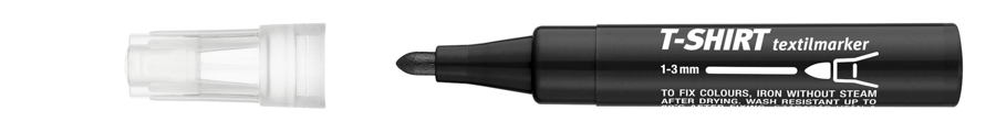 Černý popisovač na textil s kulatým hrotem. Šíře stopy 1-3 mm. Pro fixaci barev je nutné zažehlení (bez páry). Je vhodný pro popisování téměř všech druhů textilních materiálů, odolný proti praní. przeczytaj całość