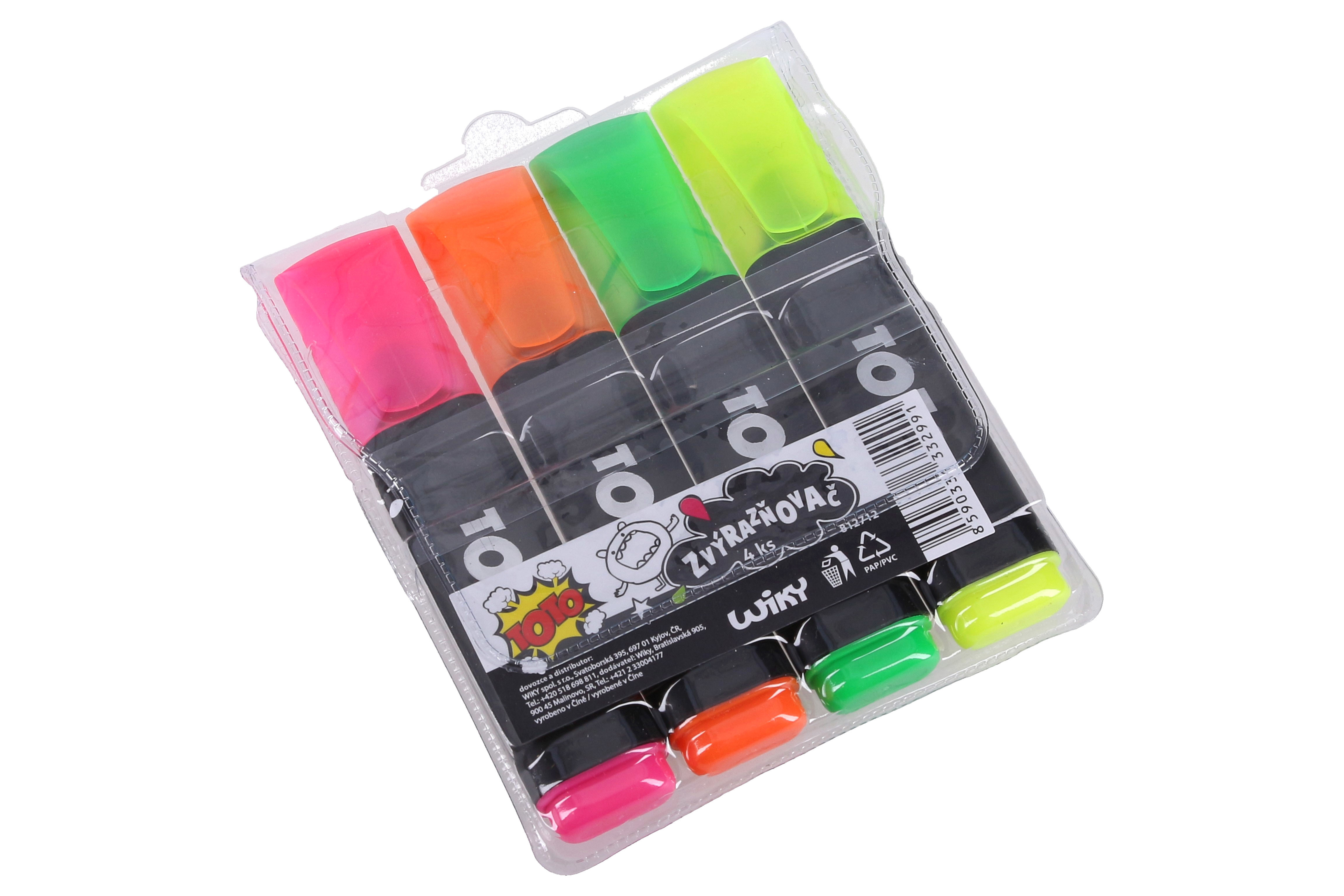 Zvýrazňovače 4 ks• Klínový hrot• 4 základní barvy (růžová, zelená, žlutá, oranžová) przeczytaj całość