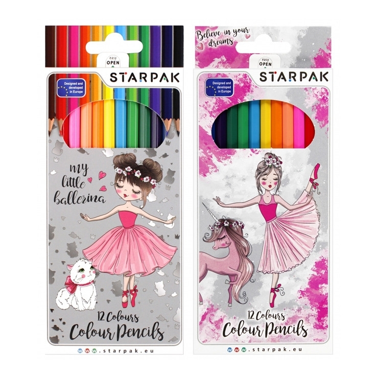 Barvičky balerína. Sada 12 ks pastelek v různých barvách. Jsou dostupné 2 varianty obalu. balení: 12 ks pastelek ve 12 barvách. Délka pastelky je 18 cm. Výrobek je určen pro děti ve věku 3+. przeczytaj całość