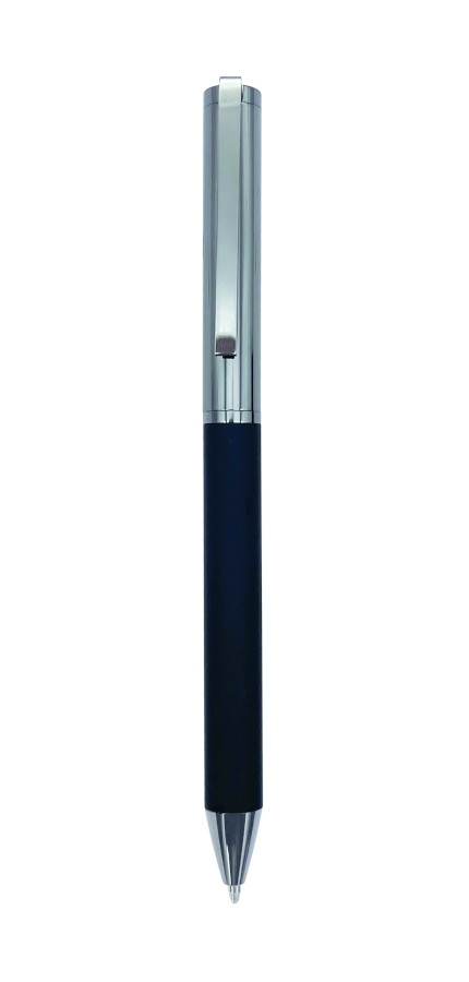 Kovové kuličkové pero s otočným mechanismem v černém provedení. Toto pero disponuje kovovým klipem a gumovým úchopem, což zaručuje pohodlné psaní. Šíře hrotu 1,0mm. Dodáváno v elegantní černé krabičce. Náhradní náplň Silver kov. przeczytaj całość
