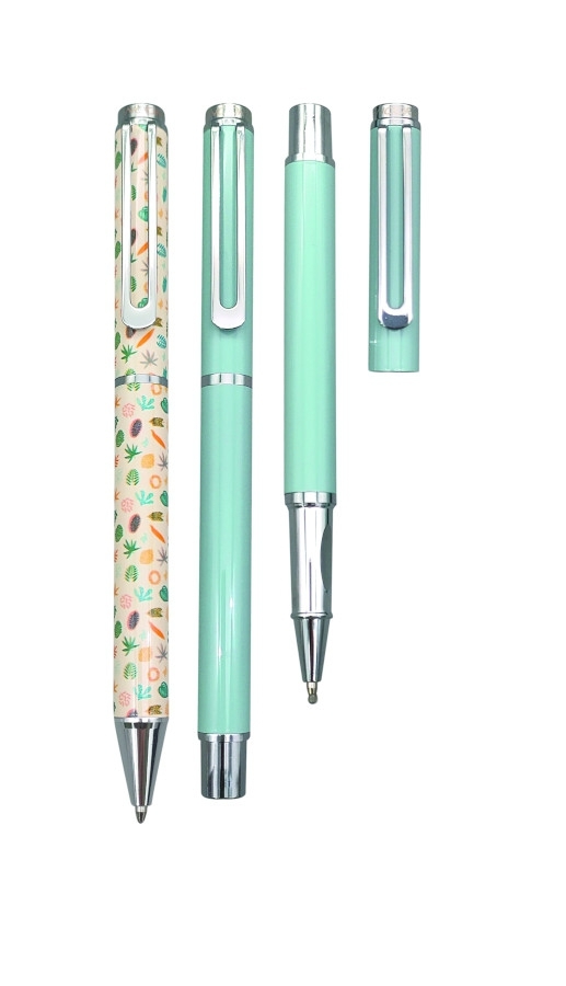 Celokovová dárková sada zahrnuje pestrobarevné kuličkové pero s otočným mechanismem a rollerem v nádherném odstínu světle modré. Dodáváno v dárkové krabičce, která dokonale doplňuje jejich design. Tato pera mají kovové klipy a šíři hrotu 1,0mm. Náhradní náplň Silver kov. przeczytaj całość