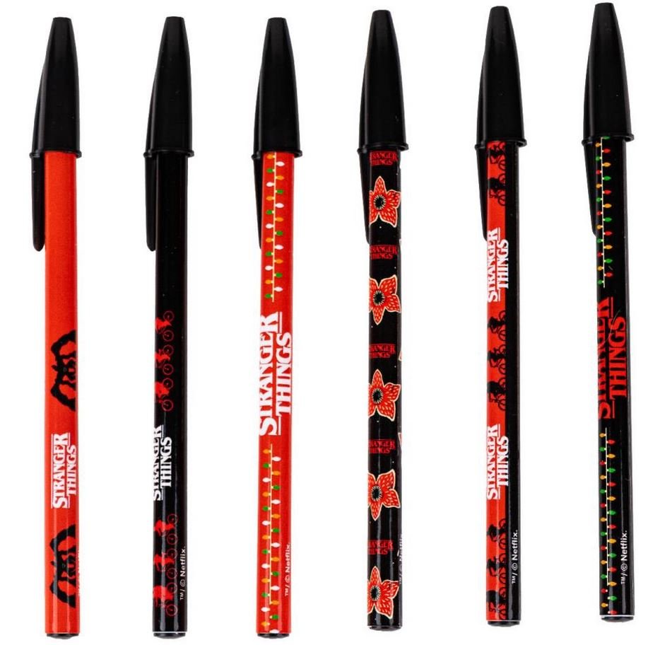 Oficiální produkt - propiska z katalogu výrobků s licencí a grafikou populárního amerického sci-fi hororového mysteriózního seriálu Stranger Things.Zboží je legálně licencováno a prodáváno se souhlasem vlastníků licenčních práv.Set 6 kusů různě barevných propisek s motivy loga a typických znaků...