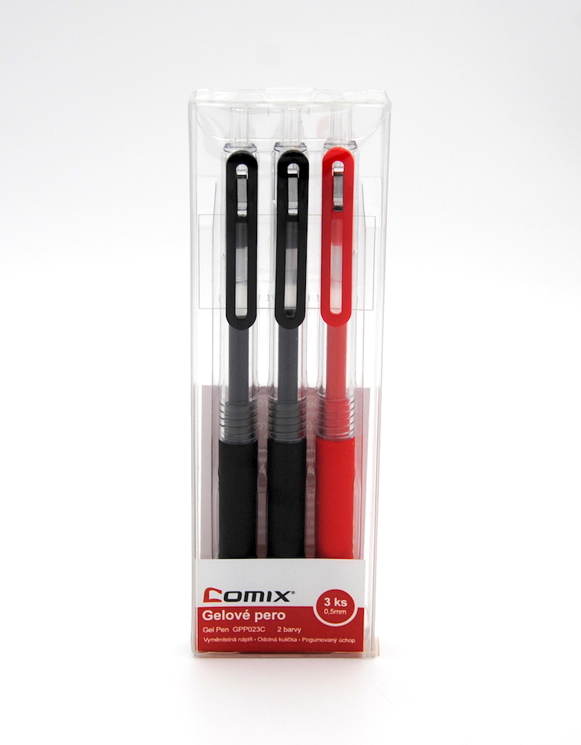 Gelové pero 3-colors Comix GPP023C sada 3ks barevných per s gumovým úchopem, díky kterému využijete velice komfortní použití, které zabraňuje napětí a křeči při dlouhodobém ... Gelové pero 3-colors Comix GPP023C sada 3ks barevných per s gumovým úchopem, díky kterému využijete velice komfortní...