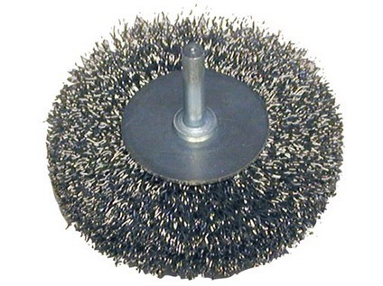 Szczotka tarczowa z drutu jest używana do delikatniejszej obróbki powierzchni metalowych i drewnianych, usuwania rdzy, a dzięki trzpieniowi nadaje się również do zamocowania w wiertarce.