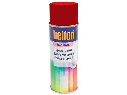 Szybkoschnąca uniwersalna farba nitrokombinacyjna w sprayu BELTON RAL 3000 o wysokiej zdolności krycia i dobrej odporności na chemikalia.