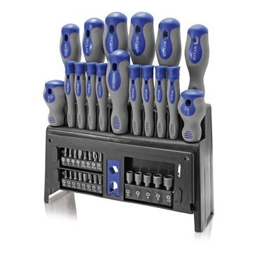 materiál: CrV chrom-vanadiová ocelsada obsahuje šroubováky:ploché: 8x150, 6x100, 5x75, 6x38křížové: PH 2x38, 1x75, 2x100, 3x150hodinářské šroubováky:ploché: 2.5x50, 3x50 mmkřížové: PH 00x50, 0x50torx: T 7x50, 8x50, 9x50, 10x501x držák bitů 10x75mm16x bity 1/4" x25 mm:ploché: 4, 5, 6 mmkřížové: 0,...