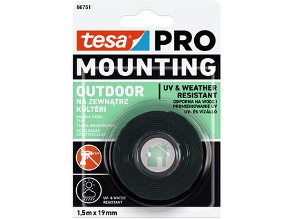 Taśma tesa PRO Mounting Outdoor przyspiesza i ułatwia pracę rzemieślnikom w środowisku zewnętrznym. Dzięki niezawodnej i skutecznej sile klejenia doskonale trzyma na trudnych powierzchniach (płytki, cegła, metal, twarde tworzywa). Klientom można więc zaoferować trwałe i bezpieczne mocowanie ważnych przedmiotów (skrzynki na listy, numery domów) za pomocą taśmy odpornej na promieniowanie UV, wilgoć i ekstremalne temperatury.