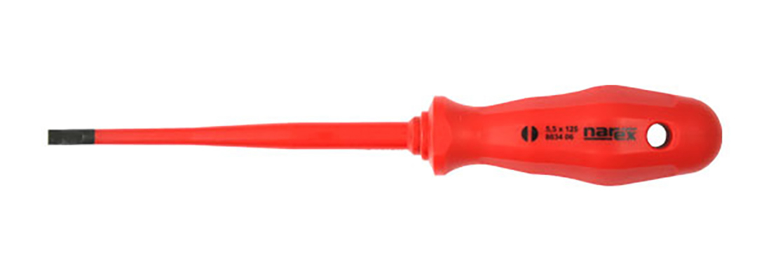 Šroubovák plochý el. SLIM 3 x 75, 8034-02.dřík:• zušlechtěná vysoce legovaná ocel• povrch černěn• izolační obstřik SLIMrukojeť:• ergonomická s tříhranným průřezem• odolné vůči oleji a benzínu• tvar brání samovolnému pohybu při odloženíNová verze elektrošroubováku SLIM.Snížený průměr izolace...