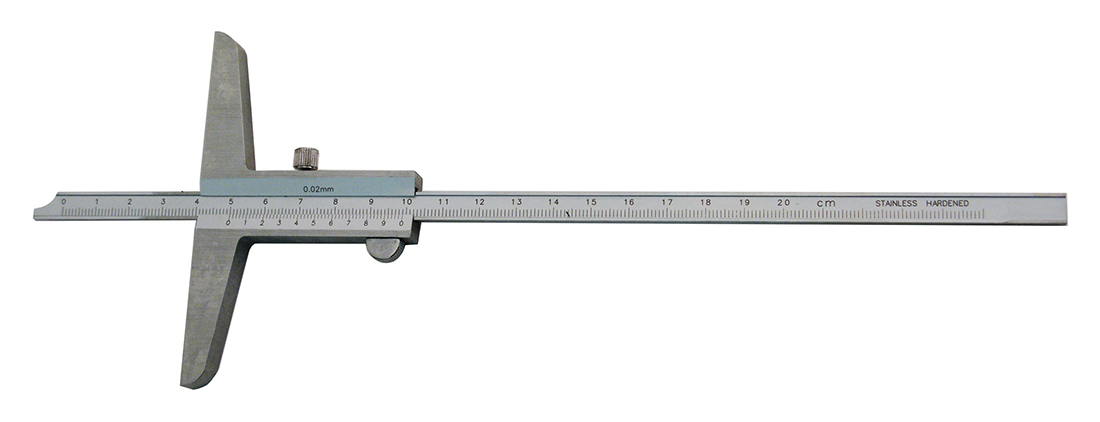 Hloubkoměr bez nosu 300/0,02 mm, DIN 862, KMITEX.parametr: 0 - 300 mmšířka měřicího můstku: 100 mm Hloubkoměr se používá pro nejjednodušší měření hloubky otvorů. przeczytaj całość
