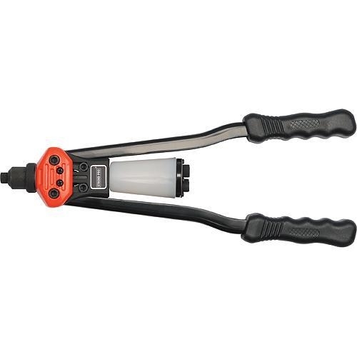 Nýtovací pákové kleště s nádobkou na použité nýty. Kleště určené pro spojení materiálu pomocí trhacích nýtů. Použití pro hliník, ocel, nerez. Balení obsahuje výměnné nýtovací koncovky pro každý závit. Pro trhací nýty průměru 2.4 / 3.2 / 4.0 / 4.8 / 6,4 mm. Délka celkem 360 mm. EAN 8585023334308 przeczytaj całość