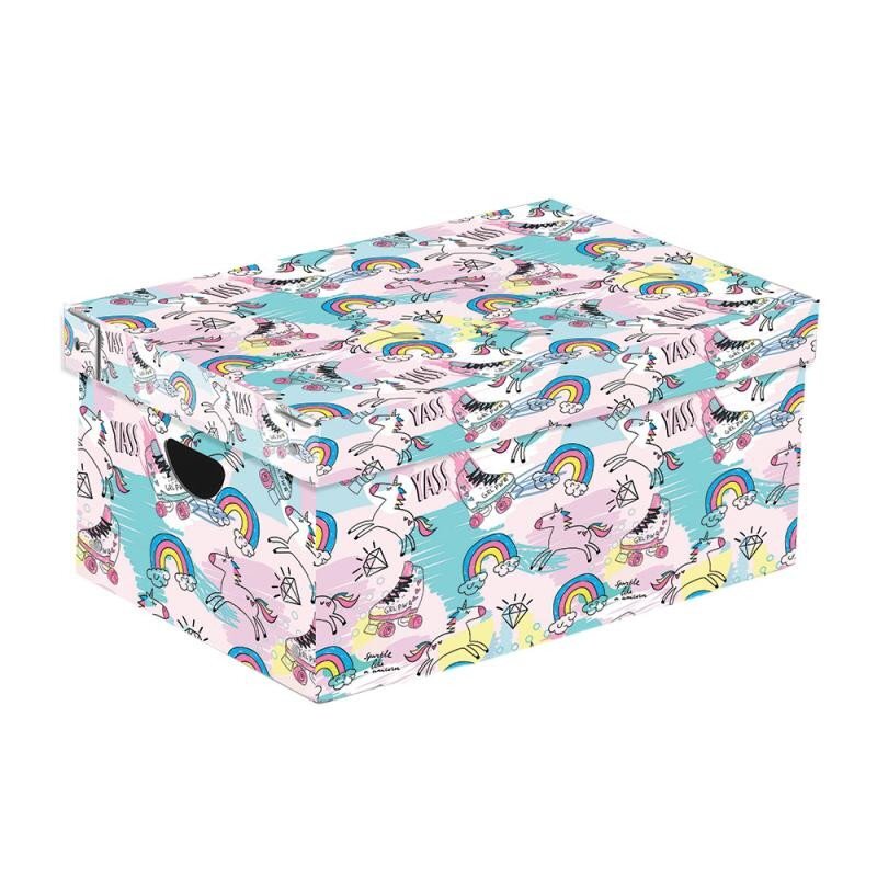 Lamino krabice s víkem a výřezem na úchytky pro snadnější manipulaci. Vhodná k uchování různých předmětů od dokumentů až po hračky. przeczytaj całość