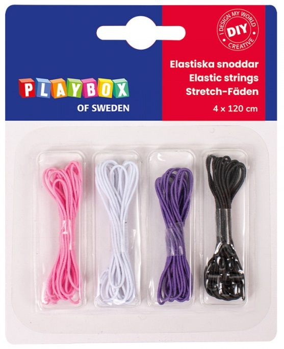 Elastyczne gumki w 4 kolorach i wysokiej jakości, które nie strzępią się przy cięciu. Są wykonane z lateksu i poliestru. Dzieciom dobrze się z nimi pracuje. Idealne do tworzenia bransoletek, naszyjników i breloczków.